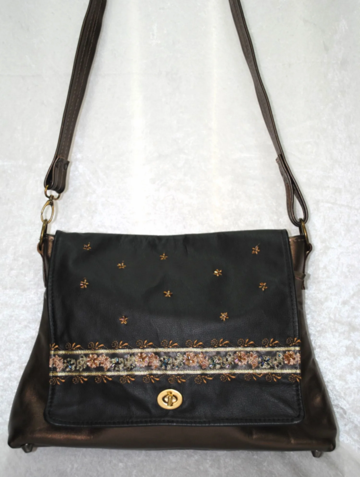 Tarey Zamin Par All Leather Black and Bronze Embroidered Messenger (Copy) View fullsize